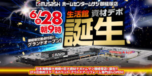 2023年6月28日(水)、石川県野々市市御経塚交差点付近にホームセンタームサシ御経塚店がグランドオープンいたします。 日本海側最大規模の巨大資材デポ、圧倒的スケールのペット・アウトドア・リフォーム専門店などが一挙登場。…