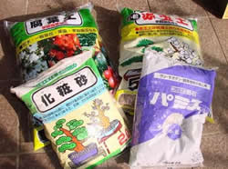 (赤玉土と腐葉土を混ぜ用土をつくります。9:1) - 軽石(鉢底の土)
