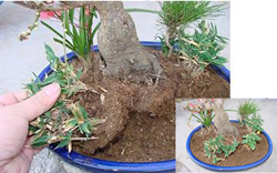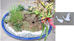 ※ 梅や松などの植物の周りに配置すると雰囲気がでます。 - 苔を配置したら苔が浮かないように軽く抑えます。