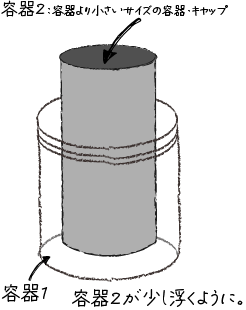 - 容器2(容器1より一回り小さいサイズの容器、キャップ。ハサミで切りやすいものがおすすめ)