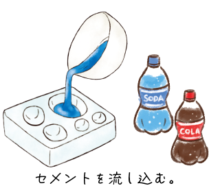 ※セメントのみで作る場合は容器1に容器2を固定してそのままたっぷりセメントを流し込んでOKです。