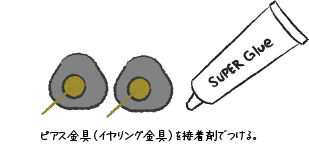 ⑤コーティング剤が乾いたら、裏側に接着剤でピアス金具(イヤリング金具)を固定します。