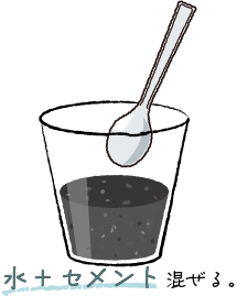 ①混ぜる用の容器にインスタントセメントと水を入れ、よく混ぜます。