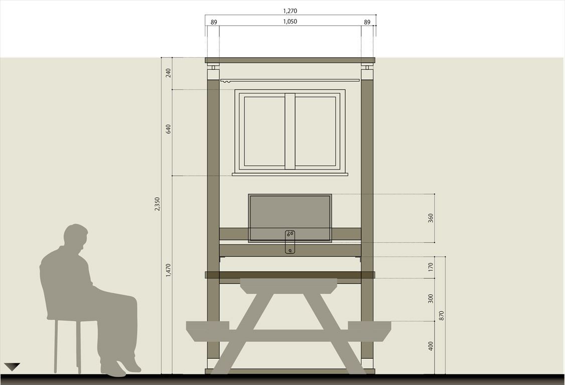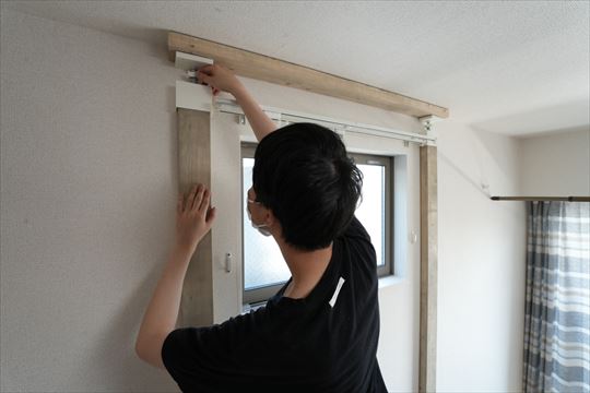 - 窓の上にカーテンレール(幅1030mm)があるので、被らないように両側に柱を立てたい