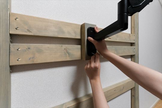 モニターは金具を噛ませてネジを締めるだけで簡単に固定できます。