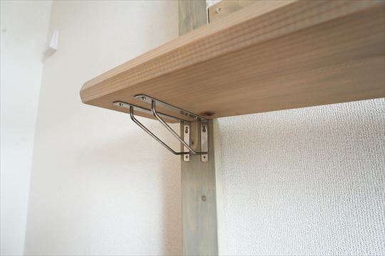立てた柱の間にアームを取り付ける木材を渡し、補助金具を使って下から固定します。