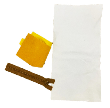 • 使用したレザー:豚革の白と黄色のスウェード生地(ポーチは柔らかい革がおすすめ)