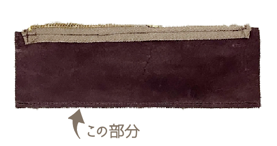 ①ファスナーのひらひらしている部分がレザーの床面側に入るように縫いつけます。反対側も同様です。