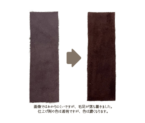 柔らかい革に対しては、艶を出すというよりも毛羽を押さえるという目的での使用というイメージです。