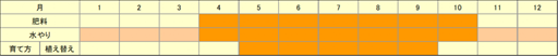 夏の生育期には緩効性肥料を2ヶ月に1回ぐらいの割合で置肥します。