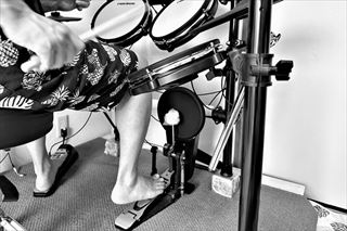 電子ドラムのキック(バスドラム)、ノリノリでペダルを連打!