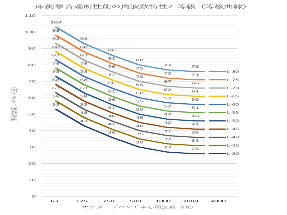 【表2】を参照すると「人の走り回り、飛び跳ねなど、ほとんど聞こえない」程度になると予測できます。