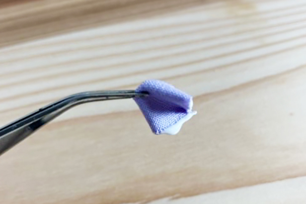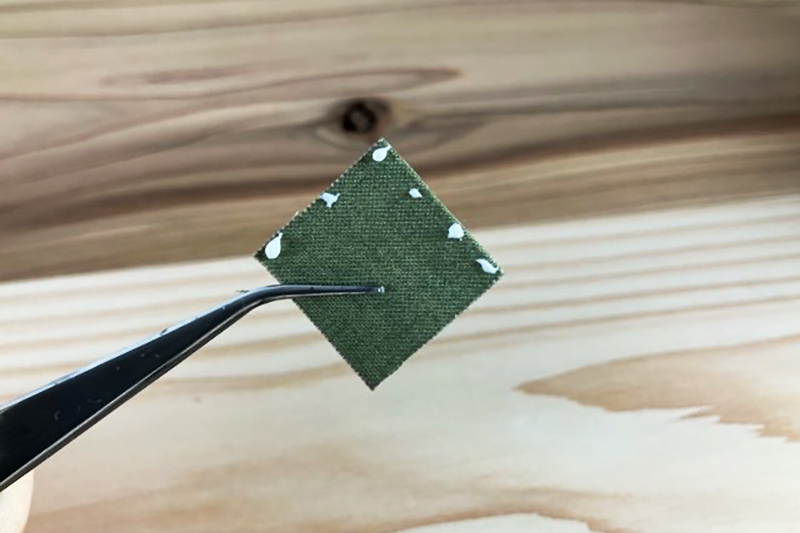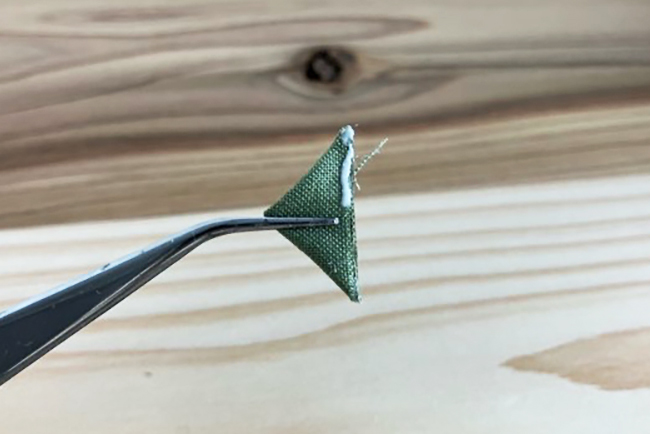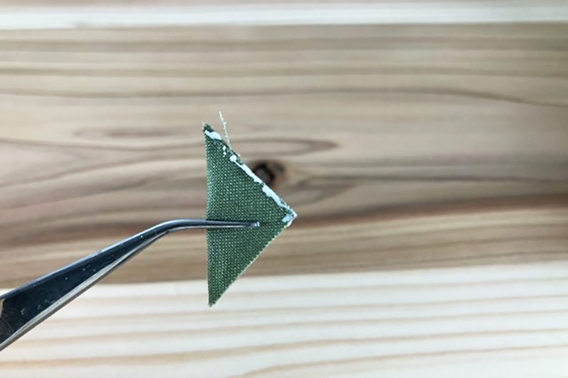 ①写真のようにボンドを付けて折ります。