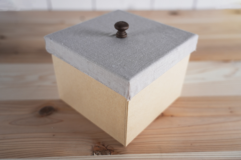 ②これはお好みですが、蓋に布を貼ります。つまみもこのタイミングで。