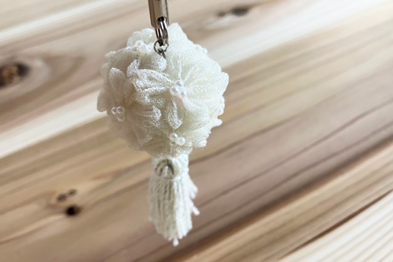 キーホルダー、ストラップ(バッグチャーム)として使用できる小さなボールブーケを作ってみました!