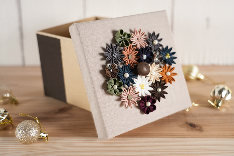はぎれを活用した‟カラフルフラワーの収納ボックス”