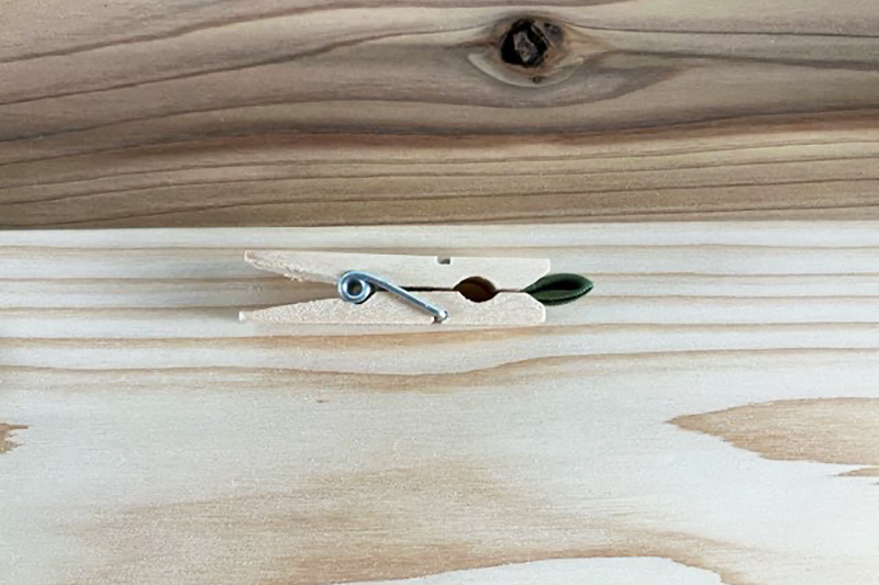 ②くっつくまで、ピンチで挟んでおくと作業がはかどります。