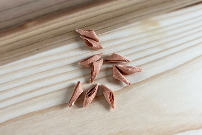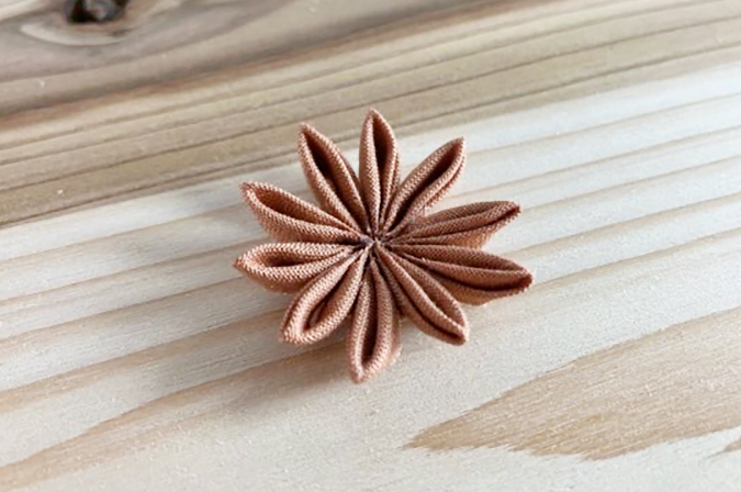 折り紙のように折って写真のような花のパーツを一つずつ作っていきます。