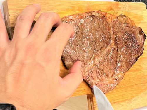そして普段買わない、すごい!「ステーキ肉」も熾火(おきび)でサッと炙って、