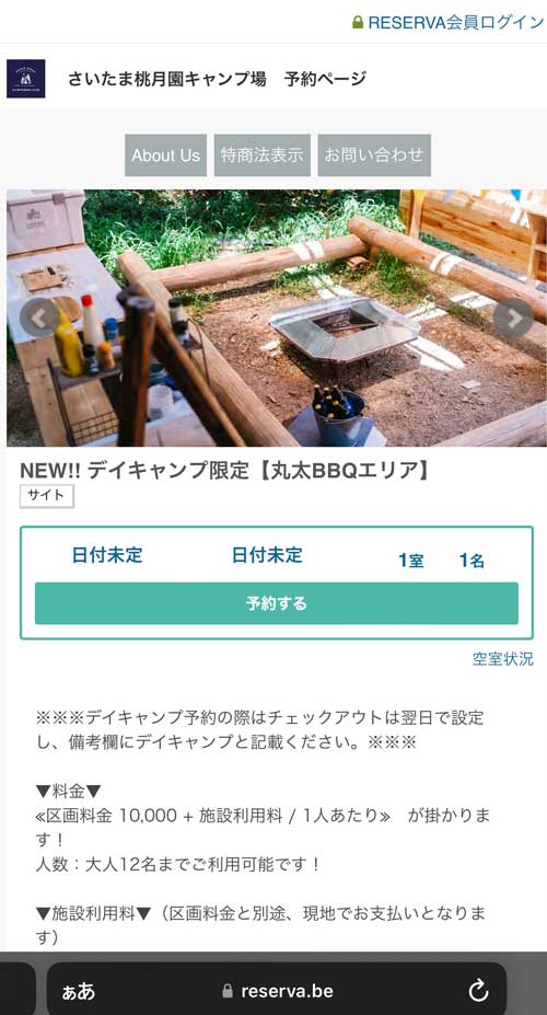 ありました!常連さんがDIYで作ったキャンプ場の予約ページ。