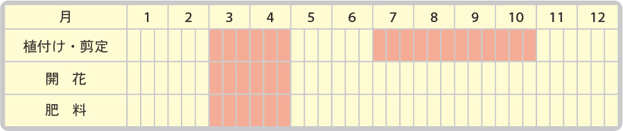 4月、7月~10月が敵期で、腐食質に富んだ肥沃な土地が良いです。しかし酸性土壌は不適合ですので、1平方メートル当り1握りの石灰を施します。