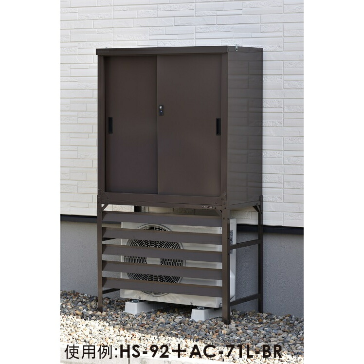 アイアンのガーデン環境にも馴染むオシャレな室外機カバーや、棚付きで便利なものなど様々な機能が備わった室外機カバーがありますよ。