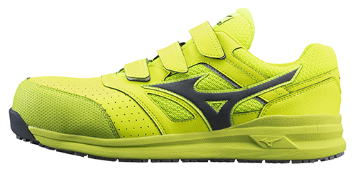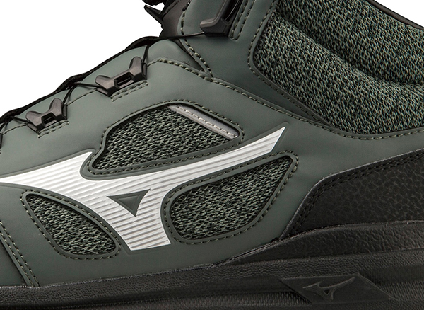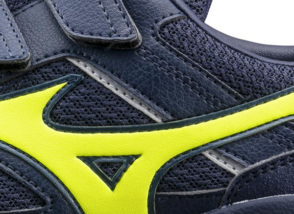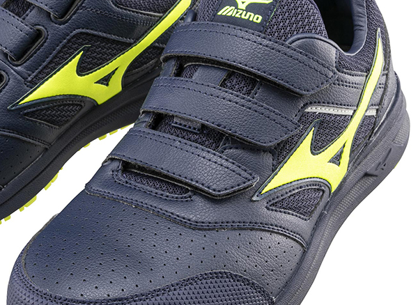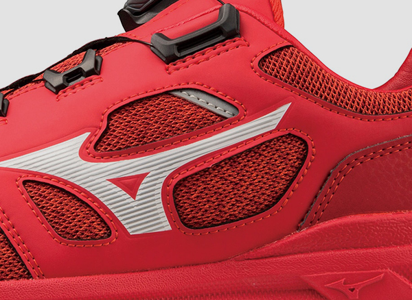 ベロ(甲部分)は通気性のある構造。シューズサイドにメッシュを使用。長時間履き続ける足元に通気性をプラス。