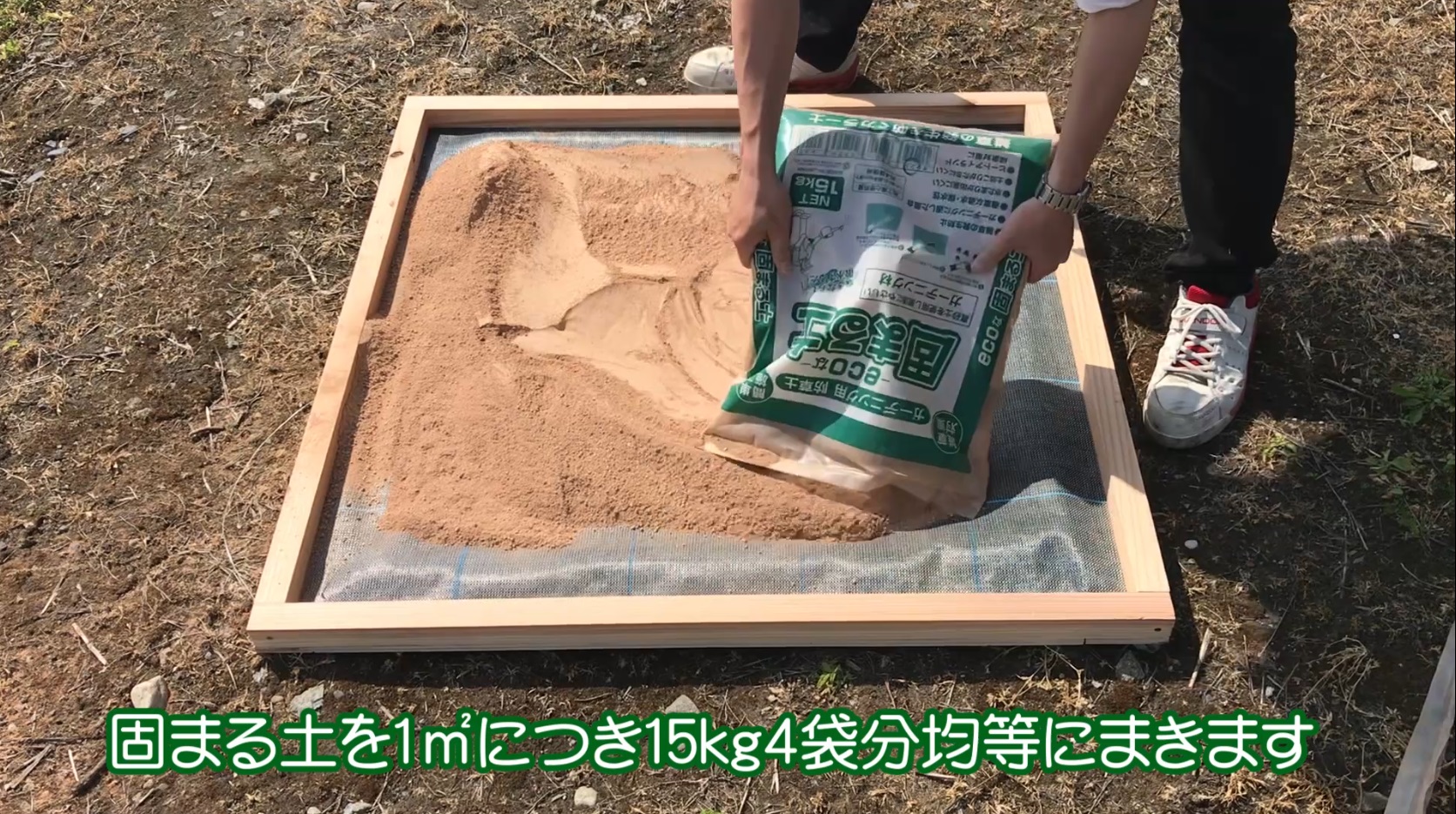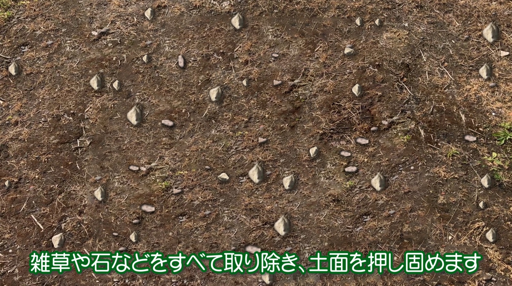 雑草や石などをすべて取り除き、土面を押し固めます。