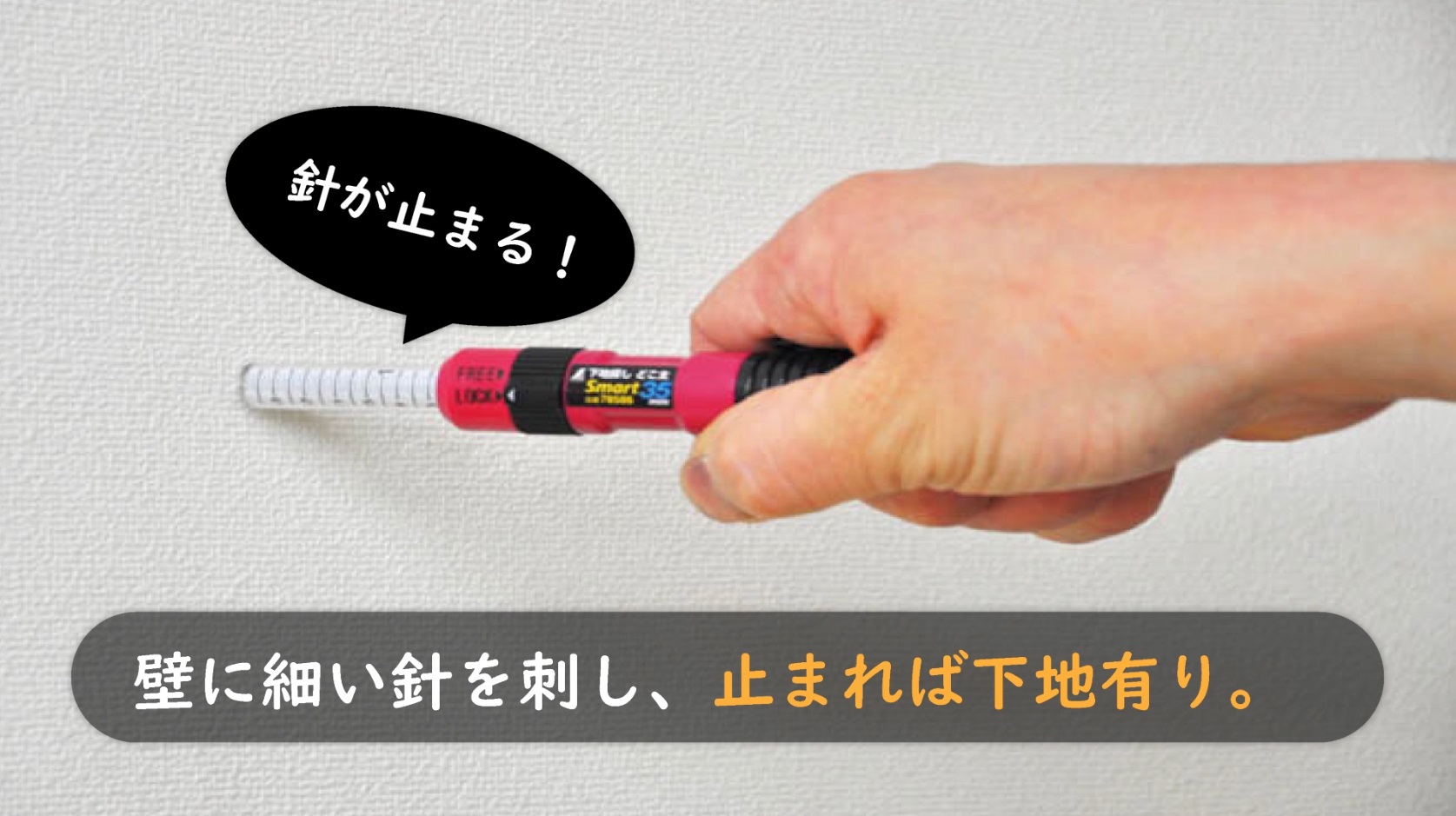 専用工具を用いて調べます。壁に小さな穴をあけて調べるタイプとセンサーで調べるタイプがあります。
