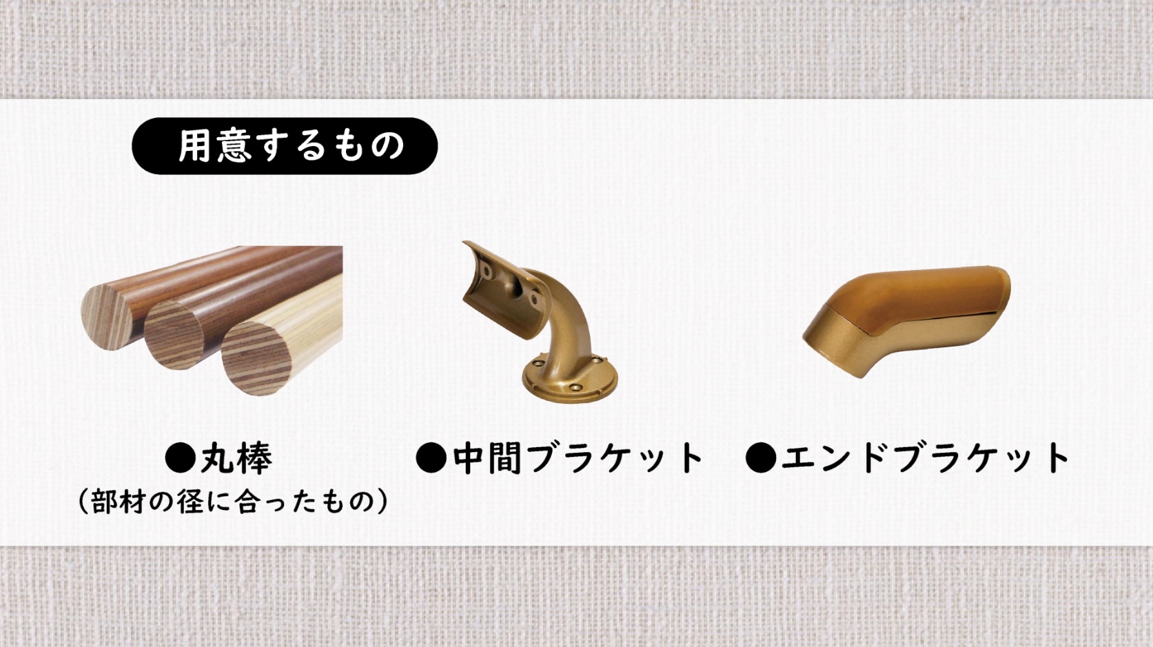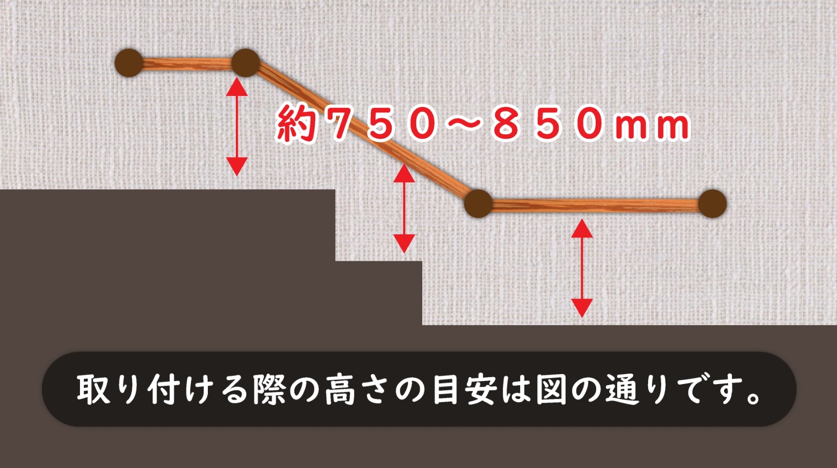 セット品はお手軽ですが、丸棒+部材を単品で揃えることで、さらに様々な場所に対応できます。長い階段や廊下での施工の際にはご検討ください。