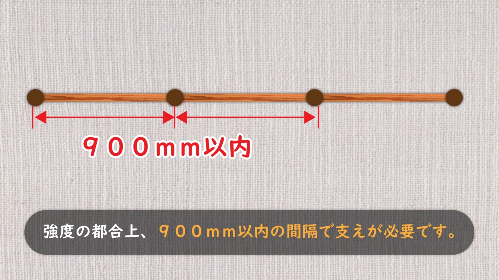 ・強度の都合上、900mm以内の間隔で支えとして中間ブラケットが必要です。