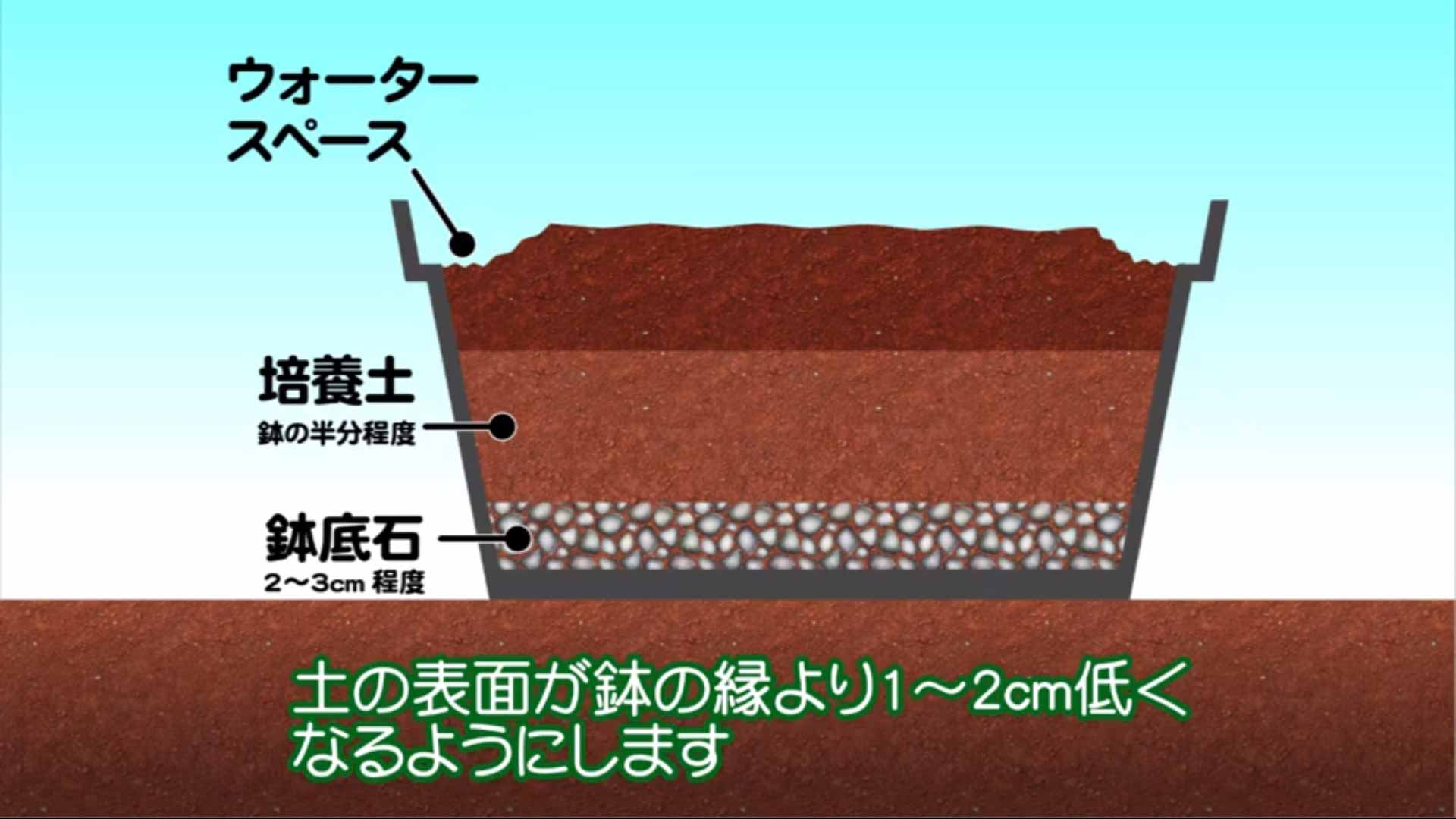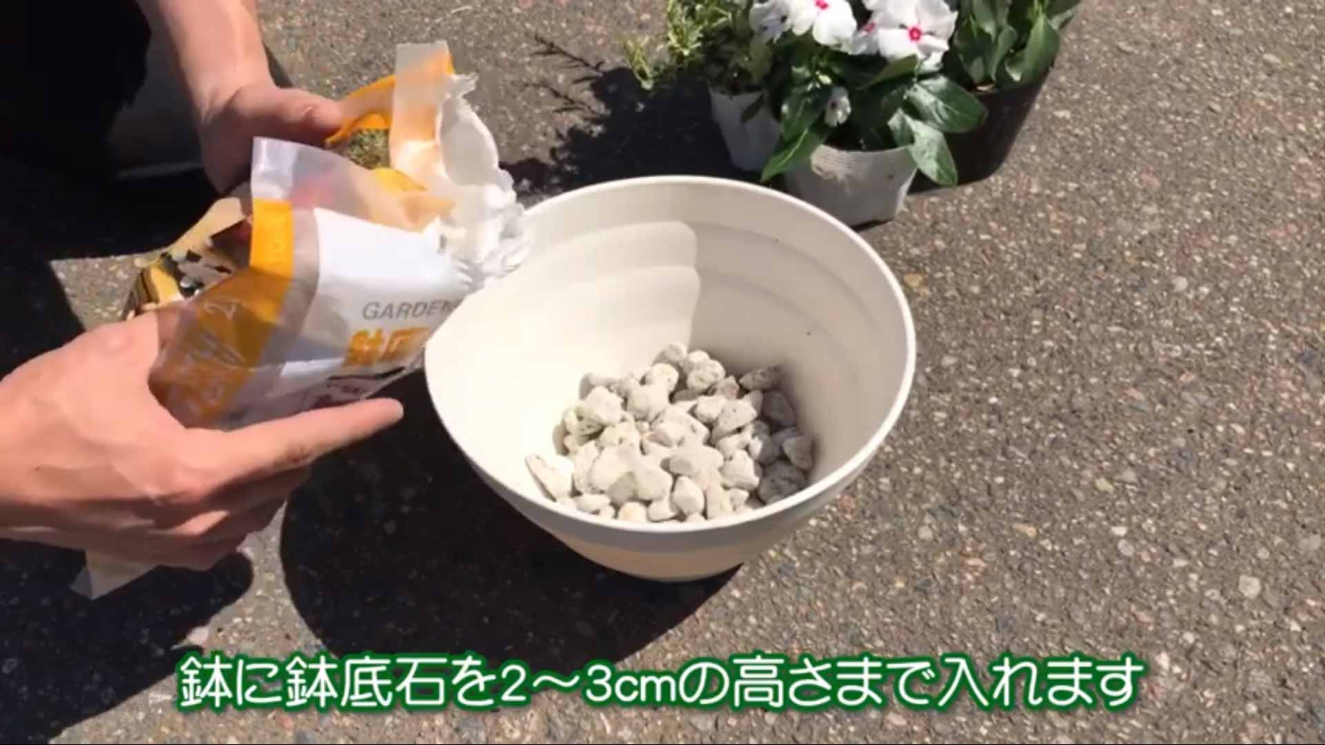 1. 鉢に鉢底石を2~3cmの高さまで入れます