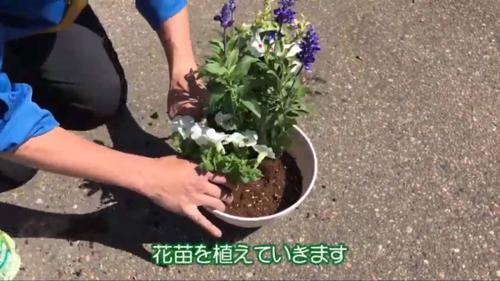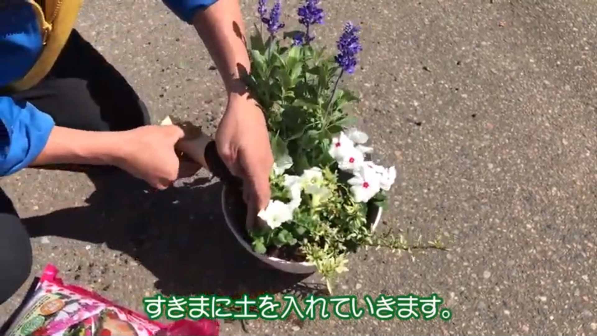 4. 軽く混ぜて平らにならしたら、花苗を植えていきます