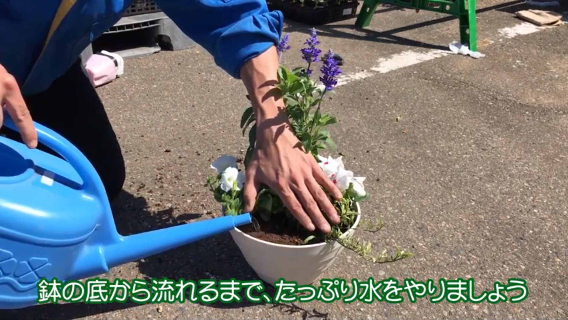 7. 鉢の底から流れるまで、たっぷり水をやれば完成!