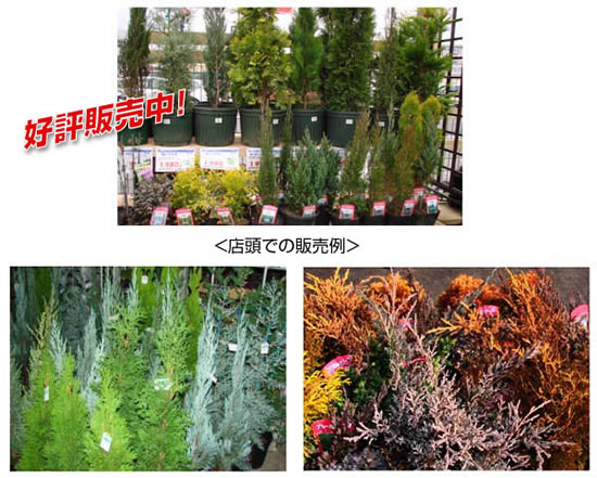 | 備考 | 葉色は濃緑ですが、葉裏が灰色のため全体的には灰緑色に見えます。 葉先は硬く、さわるととても痛いです。 | 備考 | コニファ知名度No.1 円錐型。樹高は10M位まで伸びます。 病気が出やすい性質のため植込み時に山砂を使用して水はけを良くしましょう。 | |