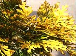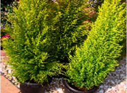 | 備考 | 円錐型。樹高は5~6m位まで伸び、 丈夫で年間を通して黄金色。 黄色と緑色のコントラストが素晴らしい。 | 備考 | 美しい円錐形品種で、春に最も美しい青銀葉色になります。生垣に最適です。 | |