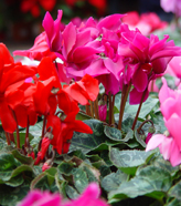 冬の代表花として有名です。数多くの園芸品種があり、花いろや形状も豊富です。通常のシクラメンとの違いとして花が小輪なのが特徴です。