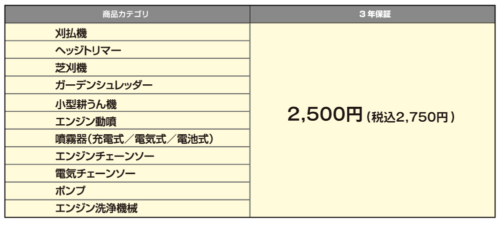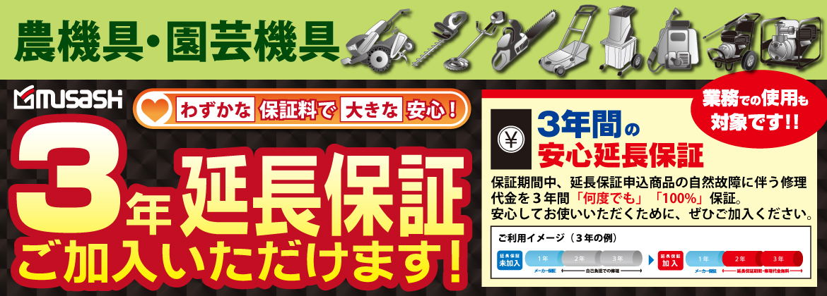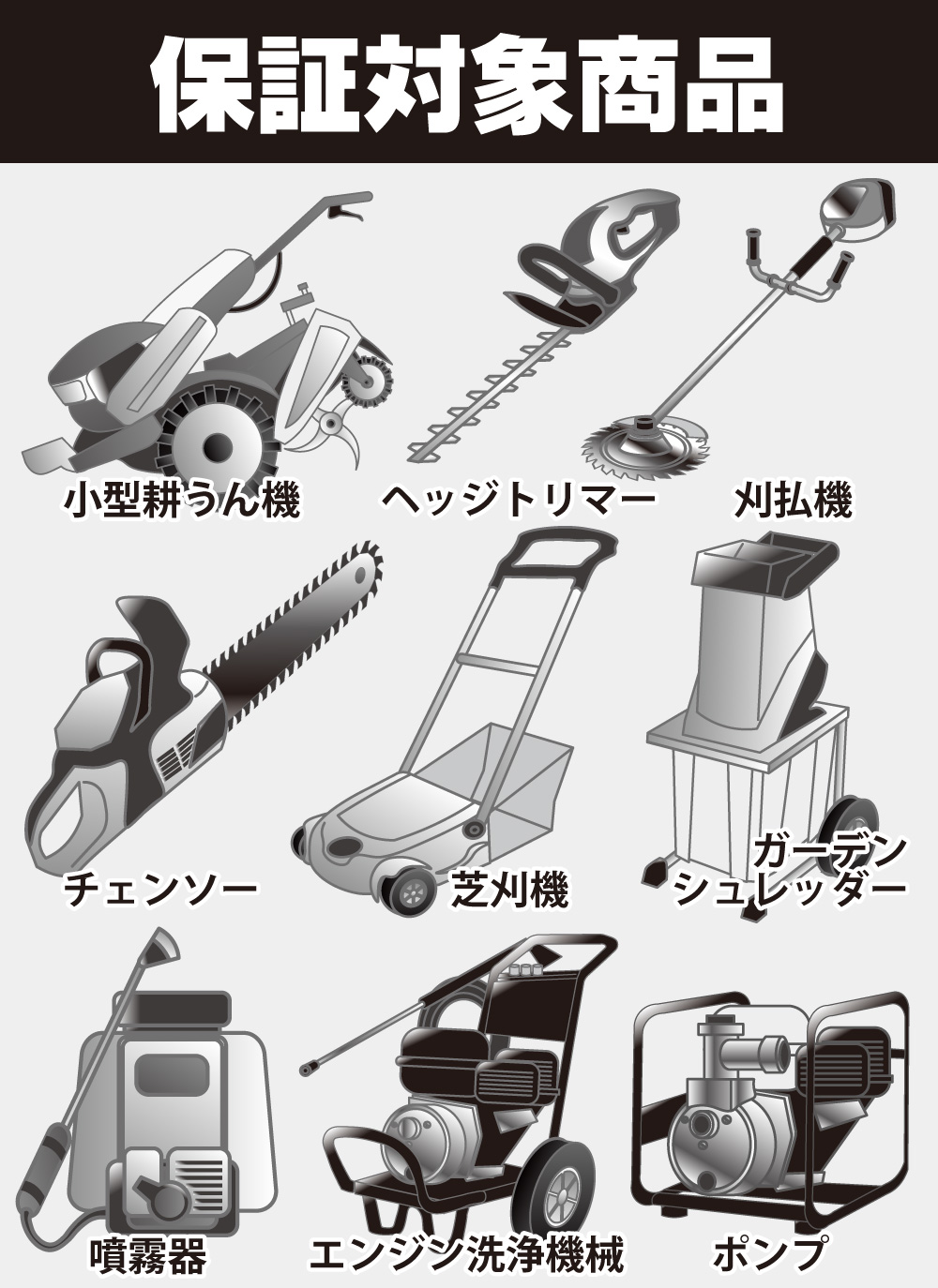 農機具・園芸機具を安心してお使いいただくために、延長保証にぜひご加入ください。
