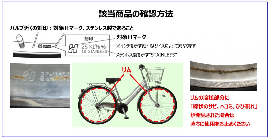 当店で2020年1月~2022年10月まで販売しておりました下記の該当商品の一部「自転車リム」(写真参照)にて不具合が発生いたしました。