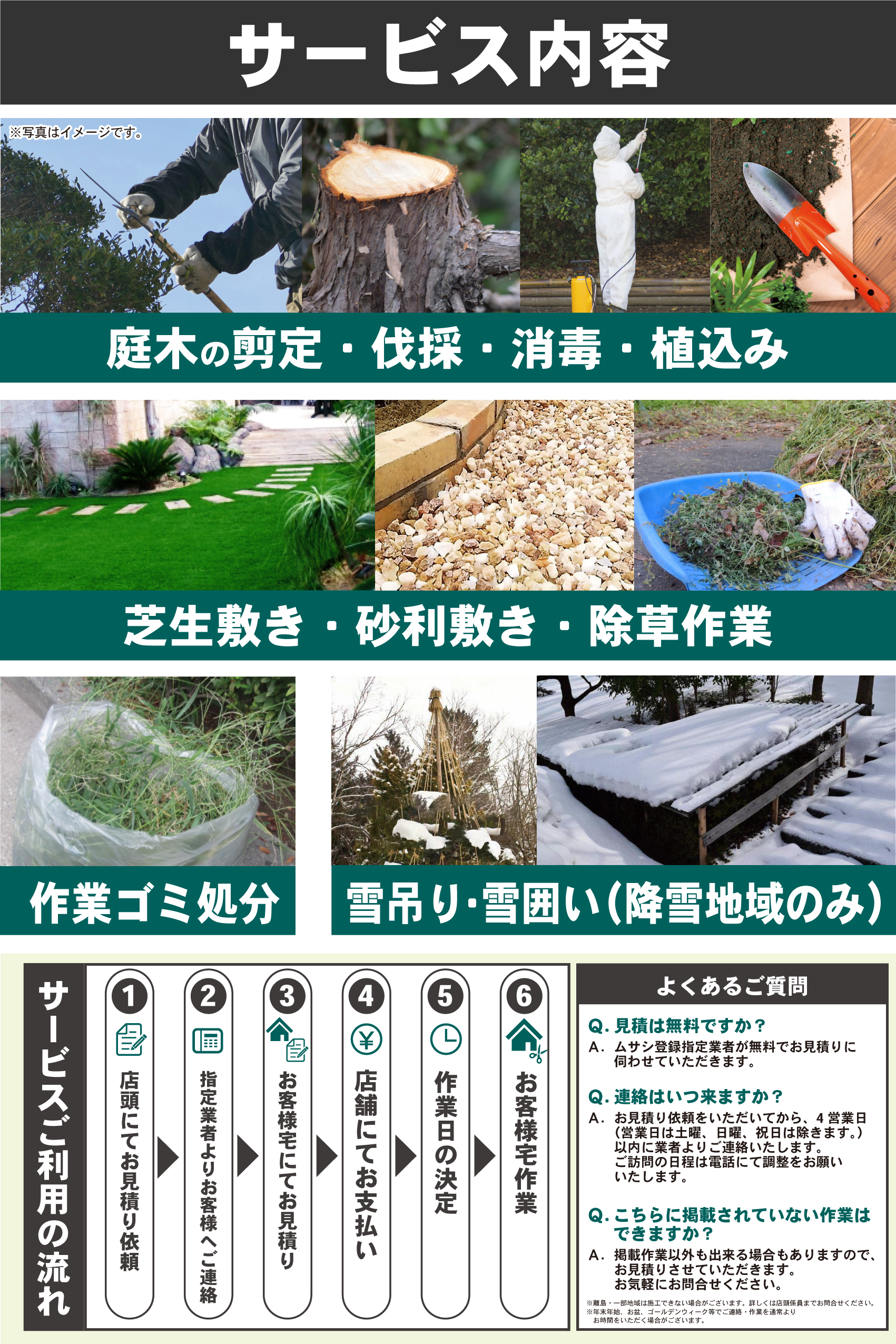 ※雪吊り・雪囲いは降雪地域に限ります。