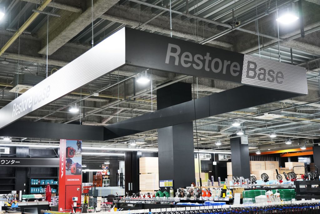 木材・鋼材・塩ビ板等のカット加工(有料)、作業着やヘルメットの名入れ、刺繍、裾上げなどのサービスもございます。「Restore Base」では、使用方法のご説明から、大型機械の修理やメンテナンスなどのアフターサービスを行うなど購入前から購入後のサポートも充実させております!