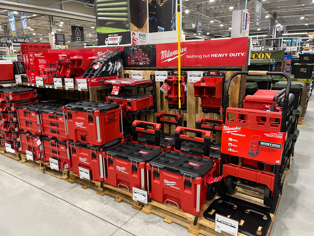 自由に組み合わせられるモジュラー式収納システムツールBOXを展開する、アメリカ生まれのメーカー「Milwaukee(ミルウォーキー)」のブース