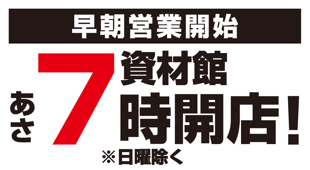 お仕事前の資材調達に!資材館の朝7時早朝営業がスタートしました